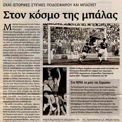 Savvas Papazoglou spoke of a cold winter evening in 1957 at a hotel in Belgrade, before the match against the almighty National team of Yugoslavia, where some of the escorts, a couple of journalists a few others in the Greek delegation, were Secret Service agents and informed Athens to expose leftist footballers communicating their conversations.