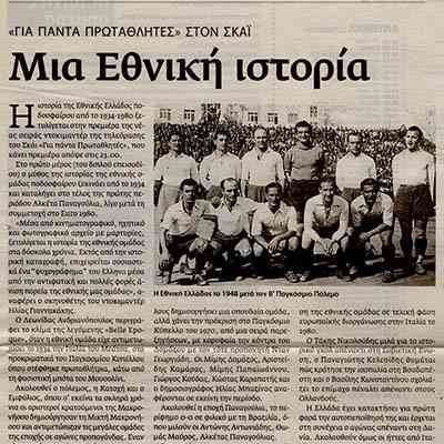 Antoniadis discussed the humiliating defeat against Malta in 1975. Vasilis Hatzipanagis talked about the only one time he played for the National team, in 1976. Alketas Panagoulias and Vassilis Konstantinou disagreed over a penalty kick that cost the 1-0 defeat against the Netherlands during the European Championship, in 1980.